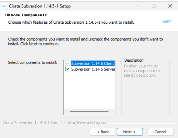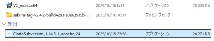 ここでは、"CirataSubversion_1.14.5-1_apache_24"を実行します。