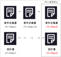 管理すべき「構成要素」に依存関係があった場合(例:プロジェクトにおける成果物:要件定義書、設計書、テスト結果など)はベースラインを設定する事によりバージョンを統一する事ができます。